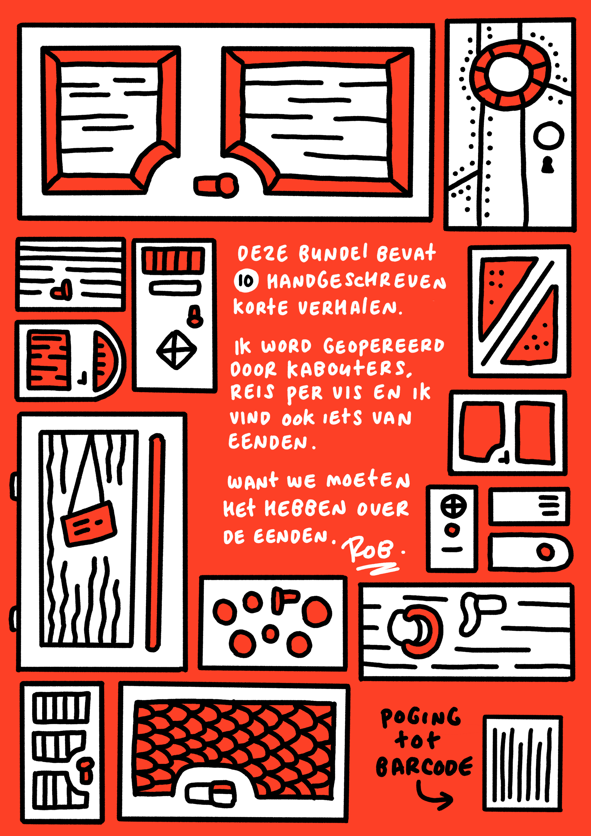 Deze bundel bevat 10 handgeschreven korte verhalen met hier en daar een stukje strip. Ze zijn gedroomd, geschreven en getekend door mijzelf; Rob van Barneveld (hoi!).